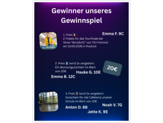 Das Gewinnspiel unserer Schülerzeitung ist beendet und wir freuen uns die Gewinner bekanntzugeben. Vielen Dank an alle, die teilgenommen haben. Es gab 2 Tickets für […]